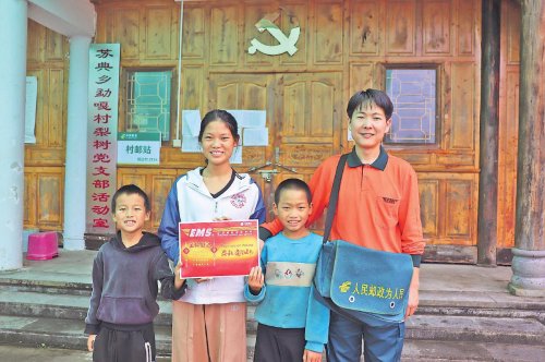 余仙花帶著她暑假免費幫助補(bǔ)習(xí)功課的小學(xué)生,感謝郵遞員送來錄取通知書。