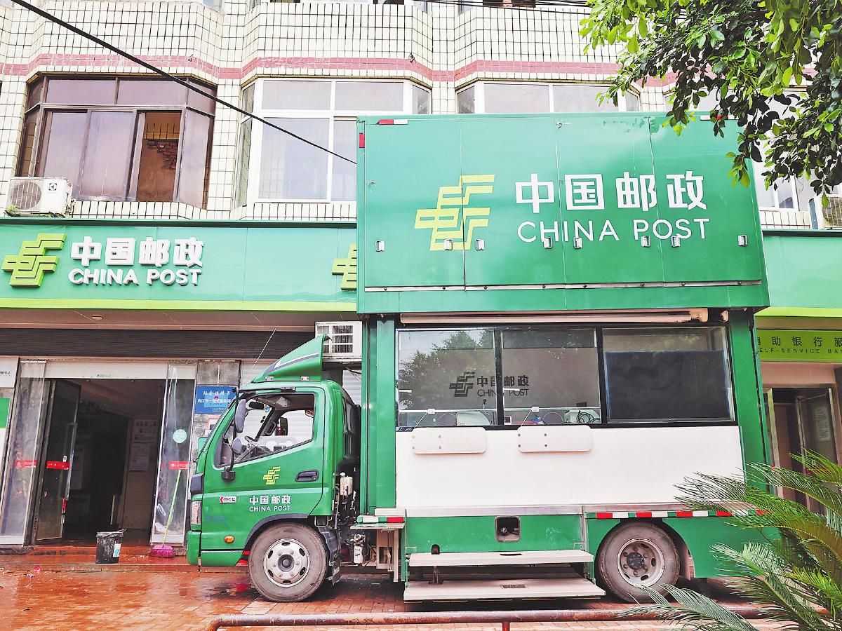 洪水退去后,四川省內江市郵政分公司配備移動服務車,第一時間恢復業務辦理。