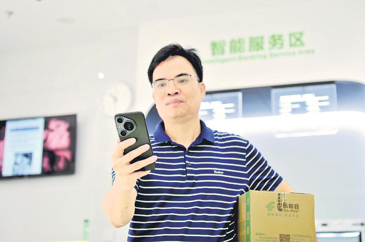 支局周圍的商戶常常會(huì)來自助寄件。在附近做了十多年電子產(chǎn)品生意的吳先禮是這個(gè)網(wǎng)點(diǎn)的常客。說起網(wǎng)點(diǎn)的變化,他很有感觸:“以前來這個(gè)營(yíng)業(yè)點(diǎn)寄東西,人多的時(shí)候要等不少時(shí)間;現(xiàn)在我提前在手機(jī)上下單,來了直接寄,像是自己家里有郵局,非常方便!”