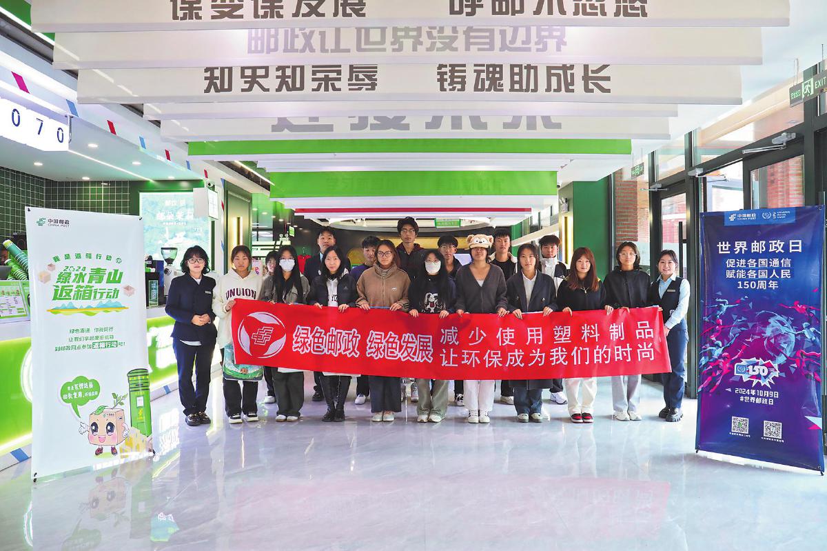 內(nèi)蒙古自治區(qū)郵政分公司會(huì)同呼和浩特市郵政分公司,以全區(qū)首家校園主題郵局——思成建院主題郵局為陣地,組織開(kāi)展了世界郵政日主題宣傳活動(dòng)。“綠色郵政為美好生活加速”環(huán)保活動(dòng)、財(cái)富投教宣講、助農(nóng)直播等豐富多彩的活動(dòng)吸引了廣大師生的關(guān)注和參與。 □王圓圓 攝