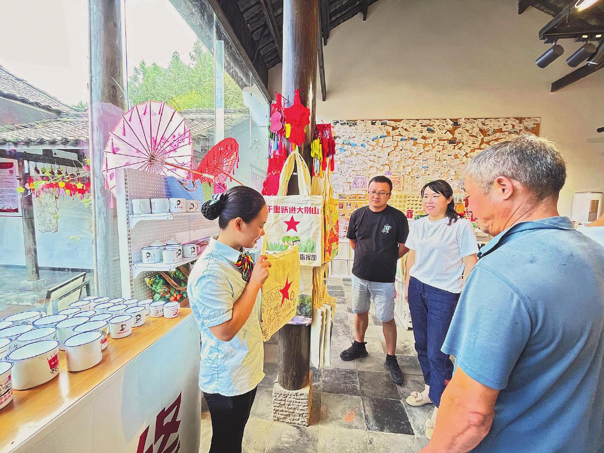 紅軍郵局工作人員正在向游客介紹各類紅色文創產品。