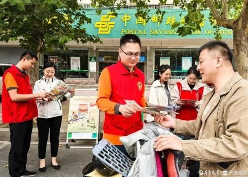 10月9日,在樂陵市郵政分公司門前,工作人員在開展寄遞安全宣傳活動。