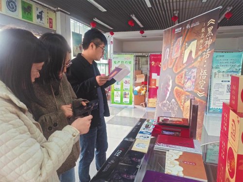 11月8日,在江蘇省連云港市西游主題郵局大廳內,一位游戲玩家駐足《黑神話:悟空》聯名郵品珍藏展架前。他一邊仔細欣賞郵品,一邊說:“我是連云港人,從小就對西游文化情有獨鐘。在《黑神話:悟空》游戲預售階段,我就預訂了豪華版,游戲正式發售后就火速通關。”