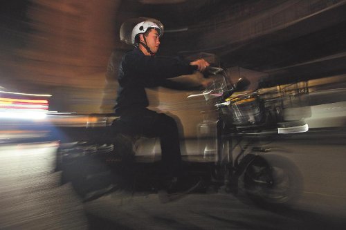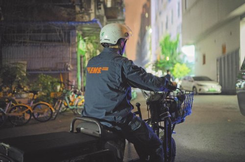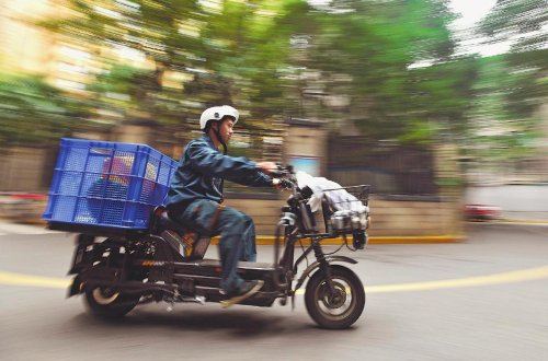 上午9點(diǎn),一輛輛滿載郵件的電動(dòng)車(chē)陸陸續(xù)續(xù)從攬投部駛出,每輛電動(dòng)車(chē)的尾部都嵌有方形塑膠箱子。為了提高投遞效率,劉孜力和伙伴們放棄了裝載量更大的三輪車(chē),利用“瘦身”的電動(dòng)車(chē)多次快速穿梭在人流擁擠的大街小巷,盡管每次只能運(yùn)載五六十件郵件。