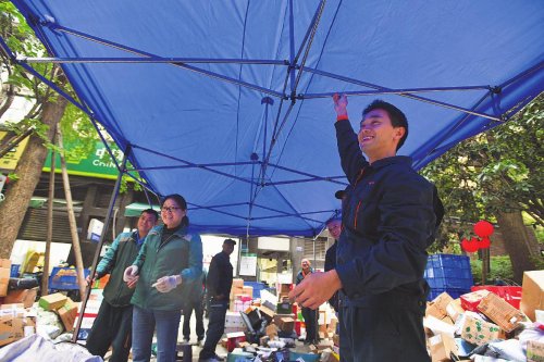 8:10,天空下起小雨,劉孜力和同事及時(shí)搭起帳篷。