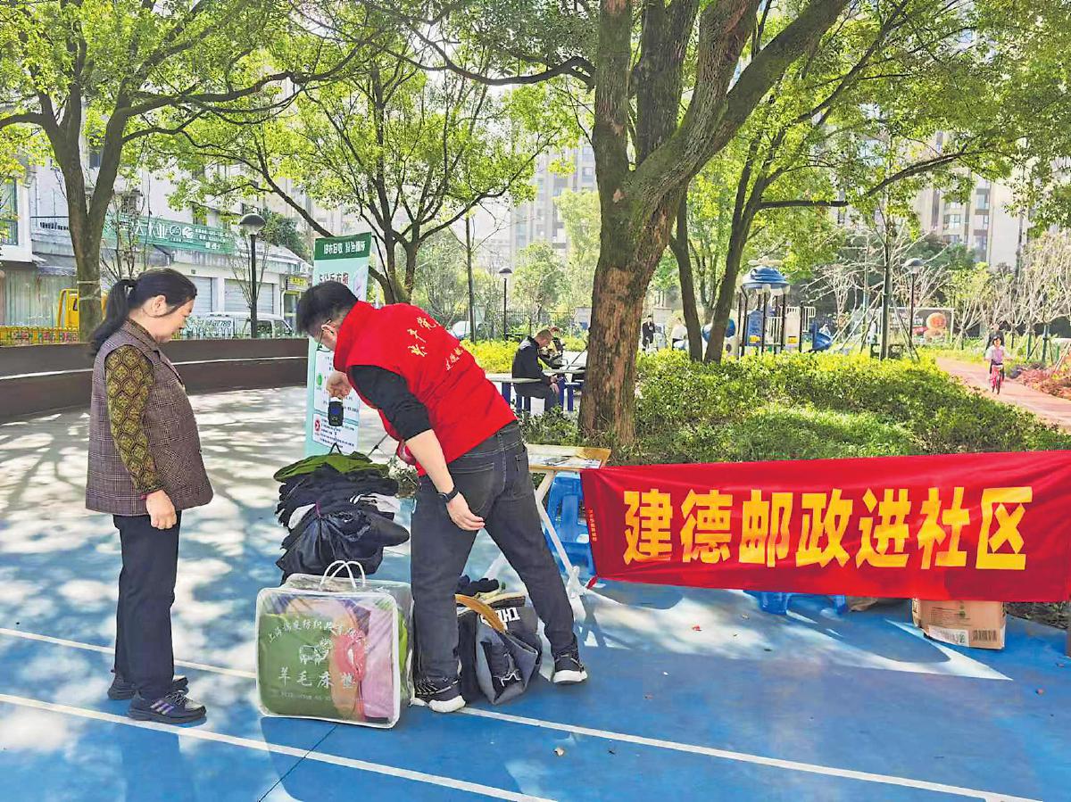 “郵政居然也有舊衣回收這項服務,真是讓我們太省心了!”當浙江省建德市新安江街道月亮灣小區住戶劉大姐看到建德市郵政分公司黨員志愿者在小區里擺攤宣傳舊衣回收服務后,立即從家里抱來一些舊衣服,并換取了一份禮品。自舊衣回收項目啟動以來,建德市分公司已在人流較為密集的農貿市場、社區門口及金融網點等地開展活動15場,宣傳并開展舊衣物回收服務。目前,該分公司已回收舊衣物2000余公斤。同時,為更好服務群眾,現場還疊加了報刊訂閱、新郵預訂等服務。
