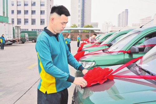 推行中心鄉鎮支局建設,農村投遞汽車化是關鍵環節。今年10月30日,商丘市郵政分公司舉辦了“推進快遞進村 助力鄉村振興”“私車公助”車輛交接儀式。活動現場,31輛綠色投遞車排成一行,構成一道亮麗風景。目前,這些嶄新的車輛已投入商丘市各中心鄉鎮支局郵件轉運投遞環節。新車投入使用后,商丘市分公司中心鄉鎮支局段道汽車投遞率達到100%,農村段道汽車投遞率達到76.9%,為三級物流體系建設增添了動能。