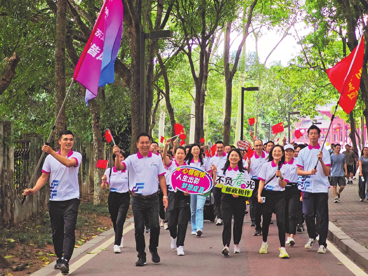 近日,廣東省東莞市郵政工會組織128名職工代表,開展“山海皆風景 郵你更精彩”健步走活動。活動中,大家精神飽滿,展現了郵政人奮發向上、積極陽光的精神面貌。