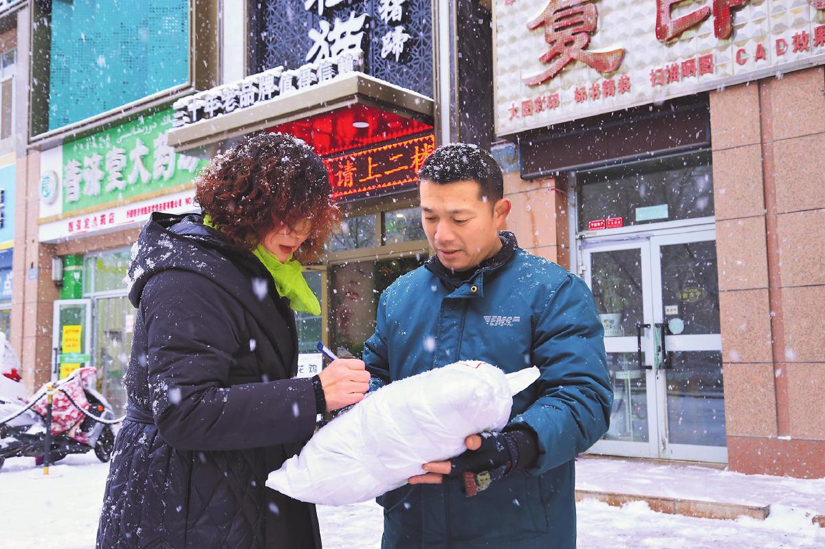 近日,新疆維吾爾自治區(qū)巴音郭楞蒙古自治州迎來了入冬后的第一場大雪。受暴雪極端天氣影響,氣溫驟降且道路濕滑難行,給快遞運輸、投遞都帶來較大阻礙。為了讓客戶盡早收到快遞,巴州郵政分公司攬投員頂著紛飛的雪花,迎著刺骨的寒風(fēng),比平時更早出班投遞。他們送件的手是冰涼的,但是送出的快件溫暖著每一位客戶。“下這么大雪還以為你們會晚點送呢,沒想到這么快就收到了。”客戶張女士對郵政服務(wù)稱贊不已。