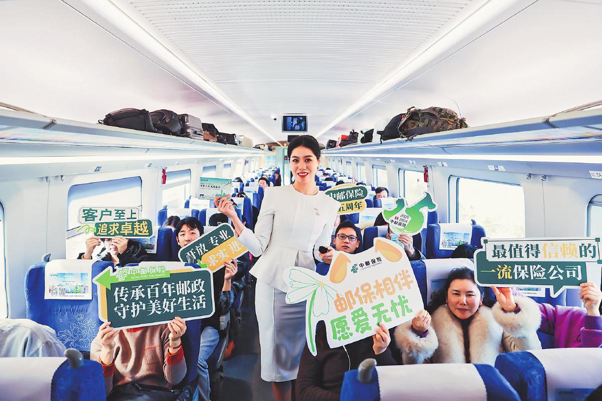 12月20日,中郵保險在江蘇南京南站舉辦了高鐵冠名專列首發(fā)儀式,并在冠名的高鐵品牌列車上開展了“情滿江蘇 服務(wù)萬家”金融消保知識問答活動。活動中,中郵保險特邀主持人向乘客介紹了中郵保險的綜合實力與優(yōu)質(zhì)服務(wù),中郵保險工作人員圍繞金融消費者權(quán)益保護(hù),與乘客進(jìn)行了趣味有獎問答互動,并邀請乘客掃描二維碼,關(guān)注中郵保險微信公眾號,觀看《大國保險》普惠促進(jìn)城鄉(xiāng)融合暨中郵保險專題片。此次活動為乘客們增添了旅途的樂趣,也進(jìn)一步傳播了中郵保險“郵保相伴 愿愛無憂”的品牌主張。