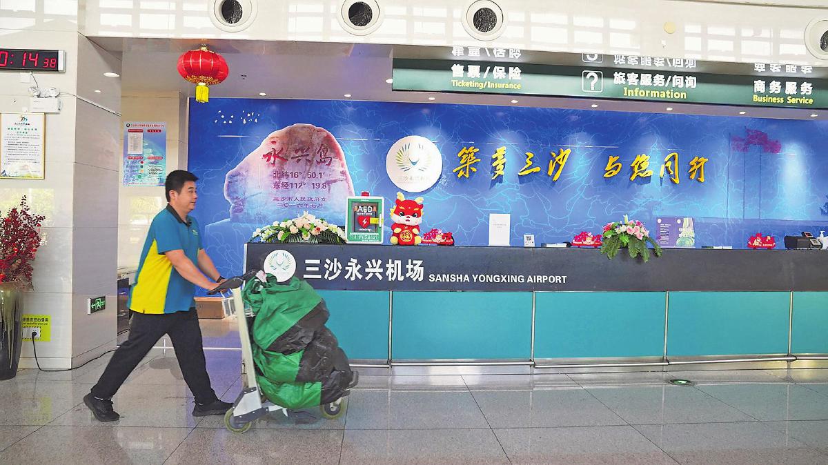 2024年12月27日8時32分,隨著海南三沙公務包機HU7071航班的順利起飛,其搭載的EMS特快郵件被送往三沙永興機場。40分鐘后,飛機平穩(wěn)降落。隨后,三沙郵政駐永興島工作人員在10時10分提取郵件,并立即進行分揀和投遞。三沙航空郵路在延續(xù)原有報刊運送服務的基礎(chǔ)上,新增EMS特快專遞郵件運送,為駐永興島黨政部門和軍民提供了更加多樣化和便捷化的郵政服務。2025年,三沙郵政將進一步提升服務水平,為建設(shè)美麗三沙貢獻更大力量。圖為三沙郵政駐永興島工作人員在永興機場提取郵件。