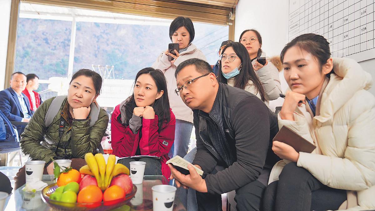 采訪中,中央、行業媒體記者們被桑南才的故事深深吸引。 □張晉通 攝