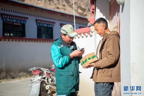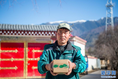 1月19日,西藏林芝市巴宜區林芝鎮尼池村村民扎西次仁簽收快遞。