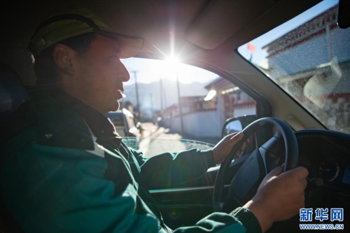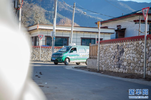 1月19日,西藏林芝市“郵快合作”新配備的郵遞車穿行在鄉村小巷。