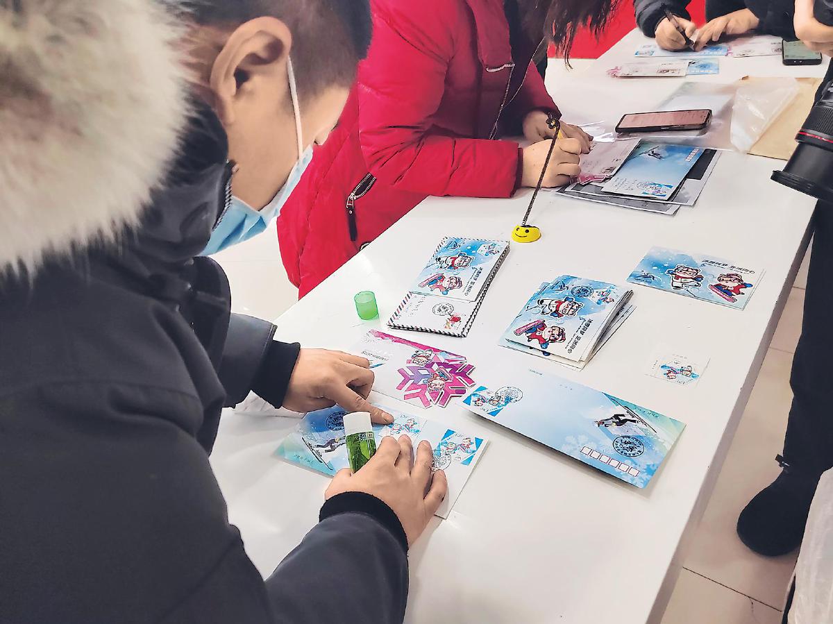 集郵愛好者在亞冬會(huì)紀(jì)念郵票首發(fā)現(xiàn)場自制首日封。 □張丹丹 攝
