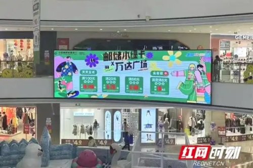 丁女士看到的宣傳是郵儲銀行湖南省分行近期在全省各大知名綜合體商圈,如萬達(dá)、步步高、天虹、友阿等,廣泛開展的“郵儲小綠卡,逛到就省到”的信用卡宣傳活動。此次活動是該分行積極響應(yīng)國家促消費、擴內(nèi)需號召,深度融合銀行文化特色,通過綜合體內(nèi)外的LED電子屏、大型吊幔、側(cè)旗、水晶立牌等多種媒介,進行滿減活動宣傳,旨在為客戶帶來全新的生活消費體驗。