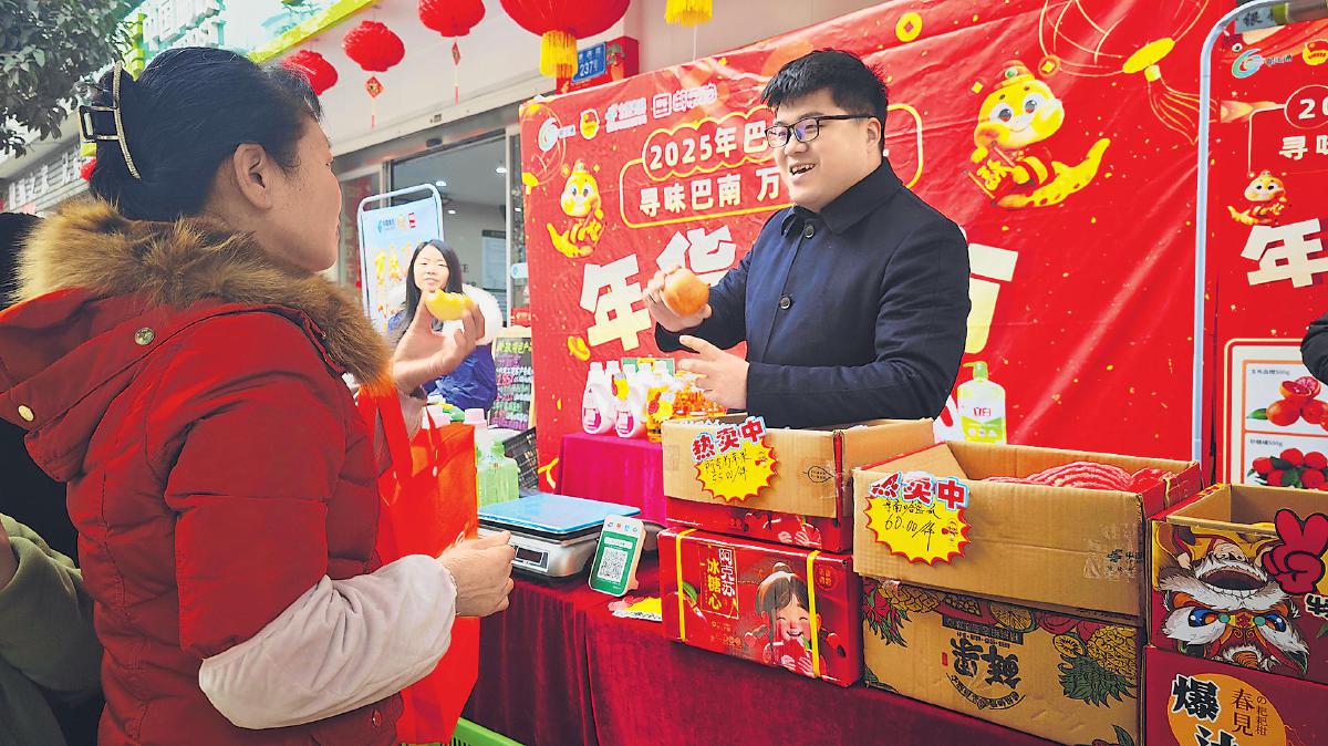 春節(jié)前,在重慶市巴南區(qū)惠民郵政所門前,大紅燈籠高高掛起,空氣中彌漫著濃濃的年味兒和阿克蘇蘋果的清香,這是重慶市巴南片區(qū)郵政分公司舉辦的“郵政年貨節(jié)”活動現(xiàn)場。