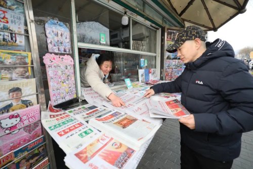 早8點,在北京西城區廣安門外大街一處報刊亭的“兩會專架”前,已有市民駐足翻閱專題報道。頭版醒目的全國政協十四屆三次會議在京開幕的消息吸引往來人群駐足瀏覽。