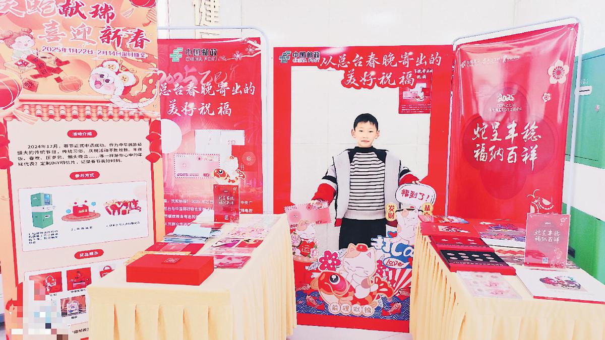 樟樹市郵政分公司將春晚臨時郵局設置在市博物館內,大紅色的春節主題裝飾奪人視線,洋溢著歡樂熱鬧的氛圍。“從總臺春晚寄出的美好祝福”打卡墻更是成了“熱門景點”,一撥又一撥的市民前來拍照留念。大家在感受濃厚文化氛圍的同時,還通過“寄賀卡”小程序下單制作專屬賀卡,并加蓋春晚紀念戳。活動期間,該分公司共銷售“從總臺春晚寄出的美好祝福”產品2套、蛇年壓歲金鈔15套,成功發展集郵會員35戶,“寄賀卡”小程序訂單量有111單。