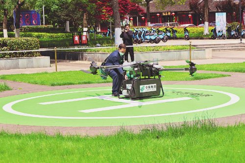 2024年4月24日上午10點38分,在蘇州張家港市,一批寄往雙山島的郵件和報紙搭載承載量達30公斤的無人機,從張家港市郵政分公司金港支局起飛,按事先審批過的航線飛過長江上空,最終抵達雙山島接收點。此趟送郵實現全程智能飛行、自主起降,共耗時5分鐘,比原先輪渡上島送郵時間縮短近1個小時(算上輪渡班次等候時間)、降低成本達20%。這是蘇州市郵政分公司首個無人機送郵試點項目,其首飛成功意味著上島快遞的運輸方式由水陸運輸突破至低空運輸。