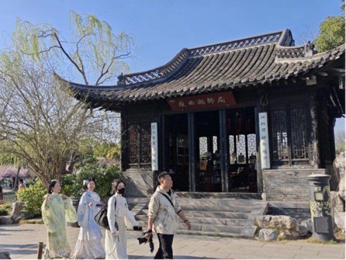 近日,一場別開生面的“春游瘦西湖”直播吸引了1300余名網(wǎng)友在線觀看。主播們身著漢服,漫步于揚州瘦西湖景區(qū)內(nèi)的二十四橋、五亭橋間,娓娓道來揚州園林之美。