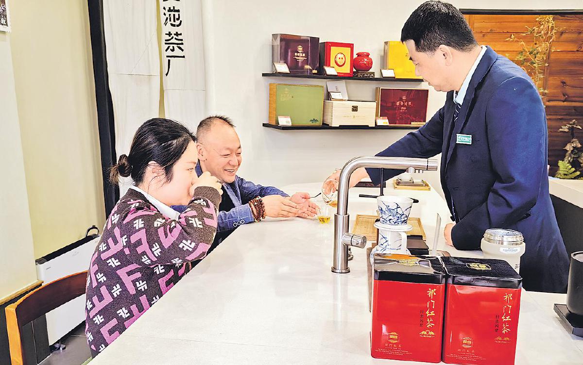 每逢節假日,祁紅主題郵局都會舉辦“茶席雅集”活動,游客可體驗手工制茶、參與茶道表演。郵局還積極借助各類活動,將皖美文化傳遞出去。去年5月,東方甄選直播團隊在祁紅主題郵局開展直播活動,展示特色文創產品及郵品,推動了祁紅文化和郵文化傳播。