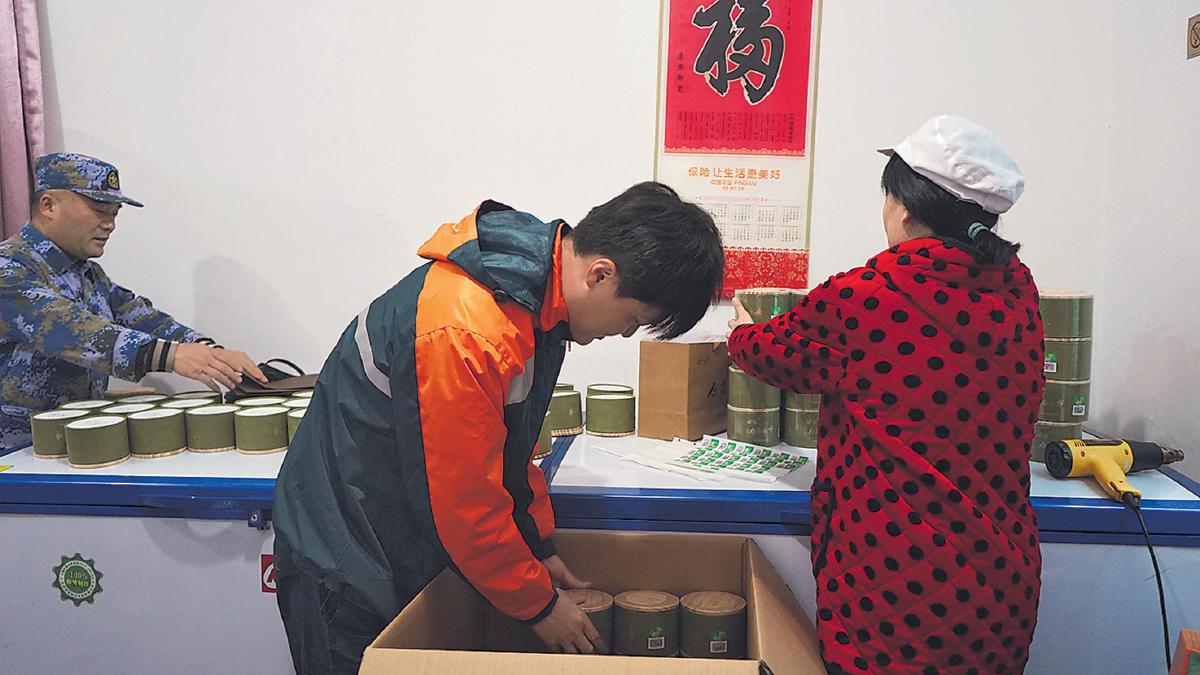 攬投員來到茶葉合作社,上門攬收茶葉包裹。 □陳茜茜 攝