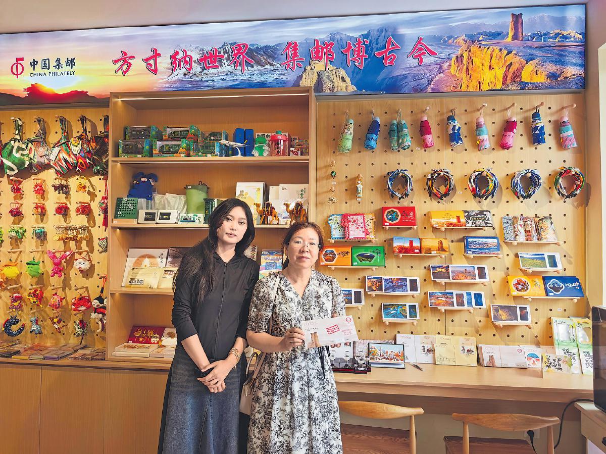 阿克蘇地區郵政分公司在參會人員入住酒店、龜茲小巷和獨庫公路零公里處設置了主題郵局,以“文化旅游”為主線,布置“新疆是個好地方”主題明信片、個性化郵折等上百款產品和有聲明信片打印設備,并提供“2025年新疆旅游發展大會”“出發吧!新疆”等多款定制紀念戳蓋戳服務,全力滿足廣大游客和集藏愛好者的需求。截至5月26日,大會服務現場接待打卡游客300余人次,新疆郵政整體服務得到參會嘉賓和游客的一致好評。圖為游客來到龜茲小巷主題郵局挑選新疆風光明信片,并加蓋“出發吧!新疆”紀念戳。