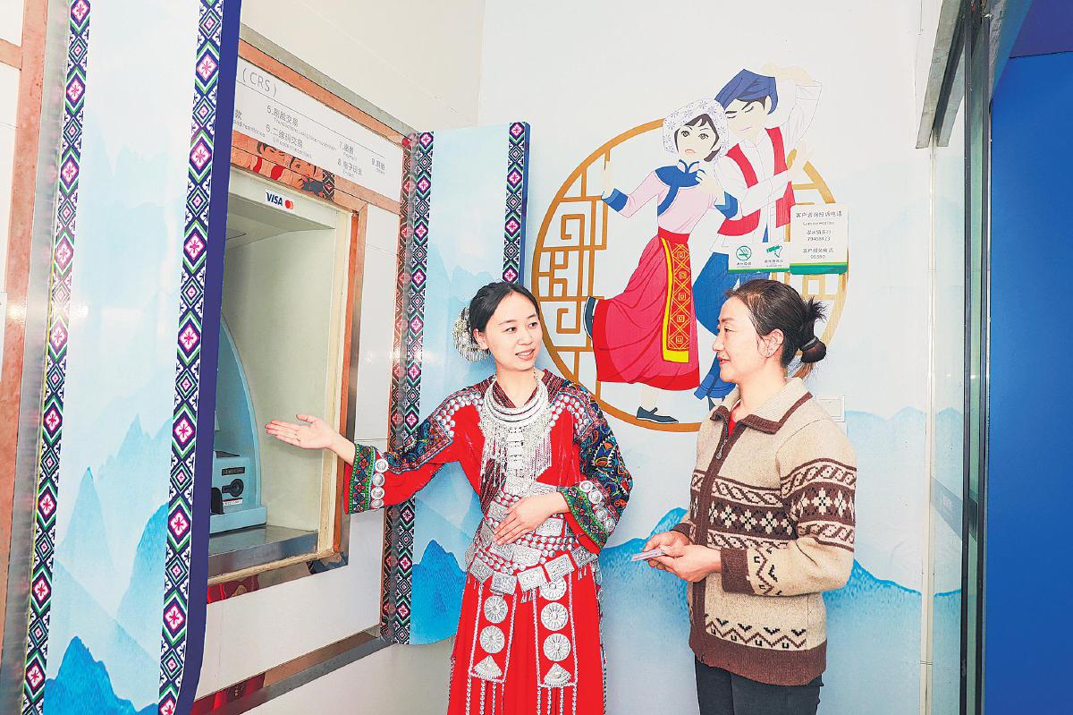 濯水鎮(zhèn)支行員工身著土家族傳統(tǒng)服飾為客戶服務。