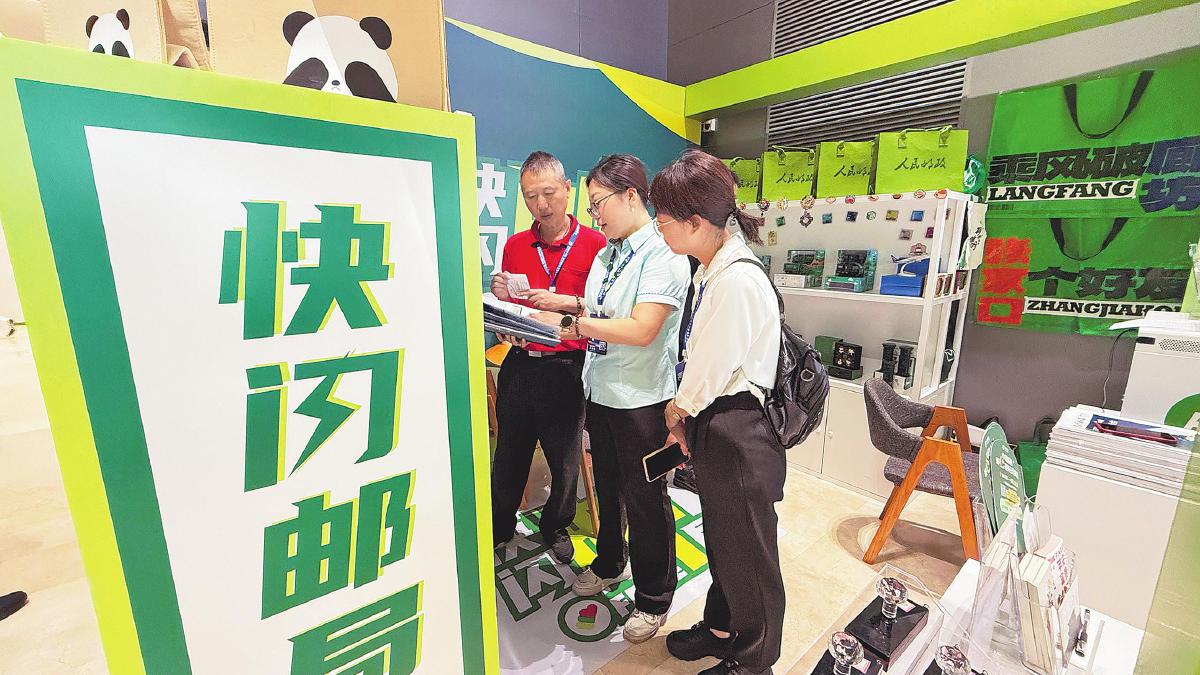 6月16日至20日,2025年中國·廊坊國際經濟貿易洽談會(以下簡稱“廊洽會”)舉行。中國郵政緊扣“降低全社會物流成本”主題,在廊坊臨空國際會展中心設置展臺,布放“新質生產力”和“低空經濟”兩個主題展示屏,展示了中國郵政加快培育新質生產力和融入低空經濟發展的典型案例,以及無人投遞車、無人機、綠色包裝箱等應用實踐。此外,還展示了在廊坊臨空經濟區建設的廊坊郵件處理中心工程項目基本情況。廊坊郵政在主會場入口處設置了快閃郵局,推出帶有廊洽會主題背景圖的有聲明信片、“冀郵打卡冊”、燕趙傳郵徽章等特色文創產品,提供郵政寄遞、集郵文創產品銷售、有聲明信片打印等服務。