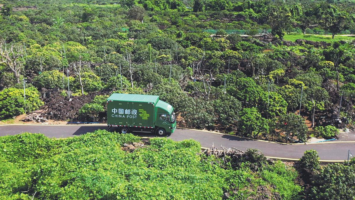 運(yùn)送荔枝郵件的郵車行駛在荔枝產(chǎn)區(qū)。