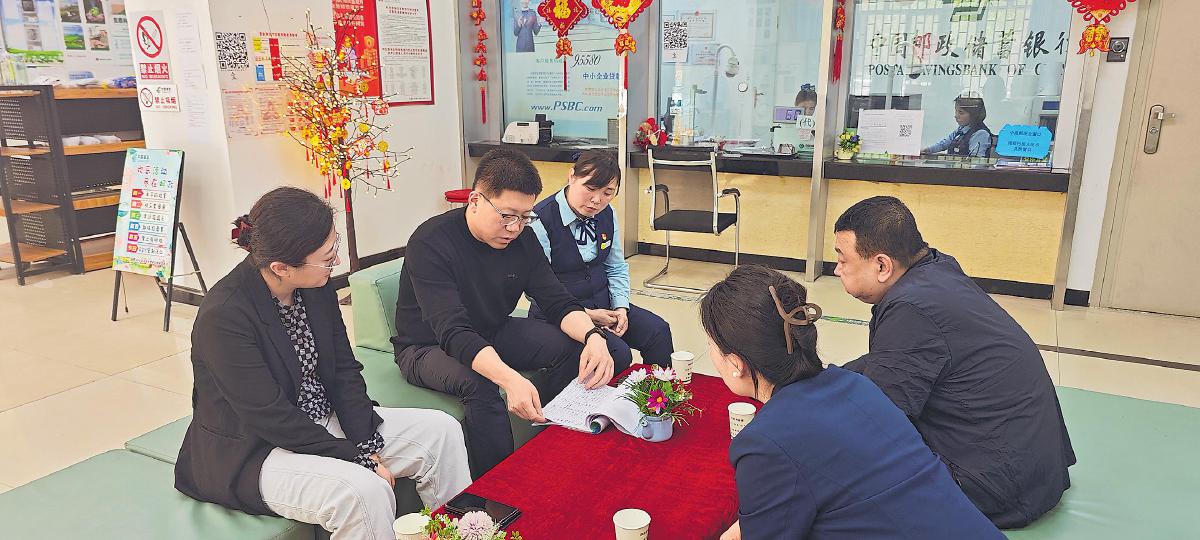 張育琪(左二)在基層網點調研指導工作。