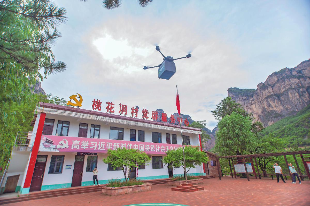 無人機把郵件送至石板巖鎮(zhèn)桃花洞村。
