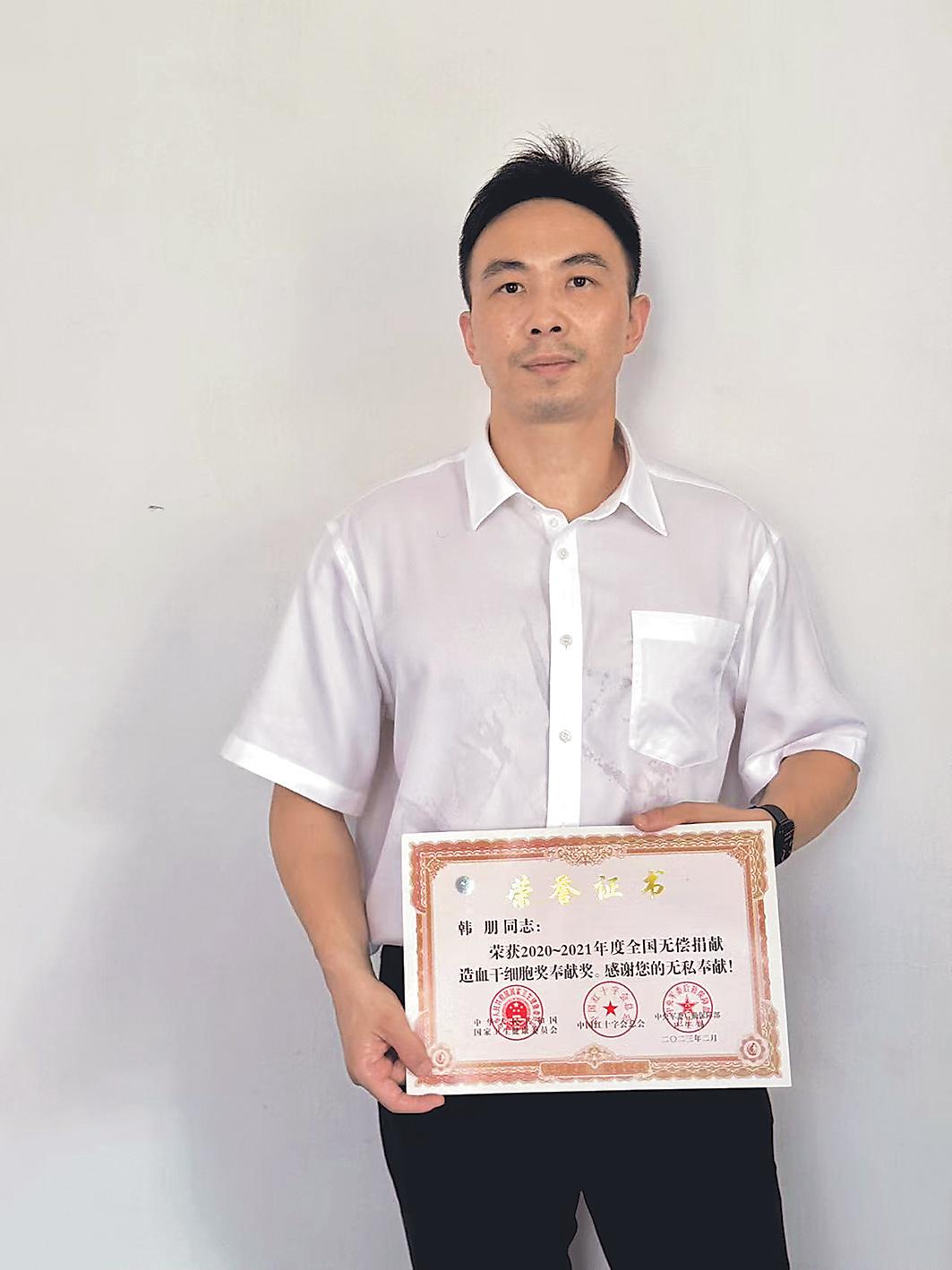 1981年出生的韓朋是同事眼中的“公益先鋒”,多年來堅持參與各類志愿服務(wù)。2011年,他在一次公益宣傳活動中了解到,造血干細胞移植對白血病、再生障礙性貧血等重癥患者有重要意義。懷著對生命的敬畏和助人的熱忱,他毫不猶豫地報名成為中華骨髓庫的一員。