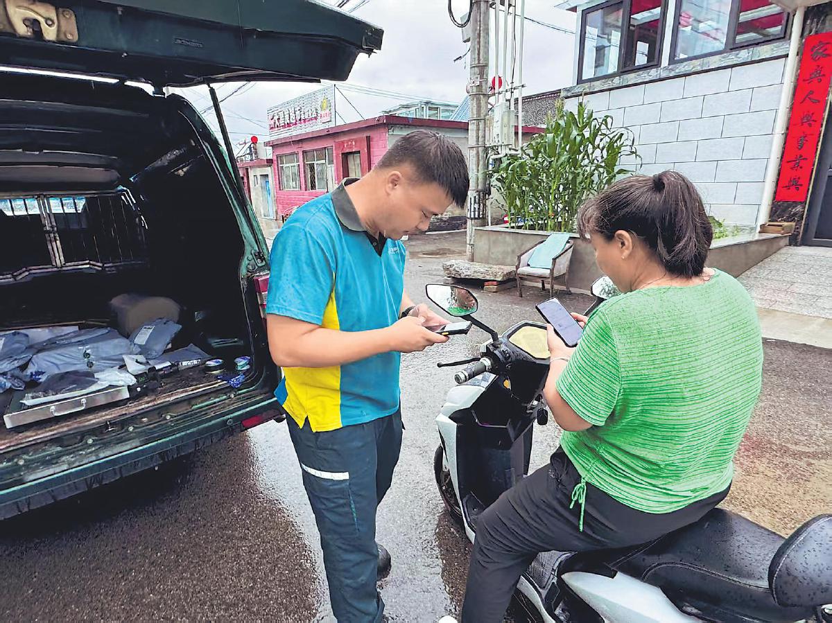 暴雨剛停,北京郵政的投遞員就開車進(jìn)村,及時(shí)為村民投遞郵件。 □丁強(qiáng) 攝