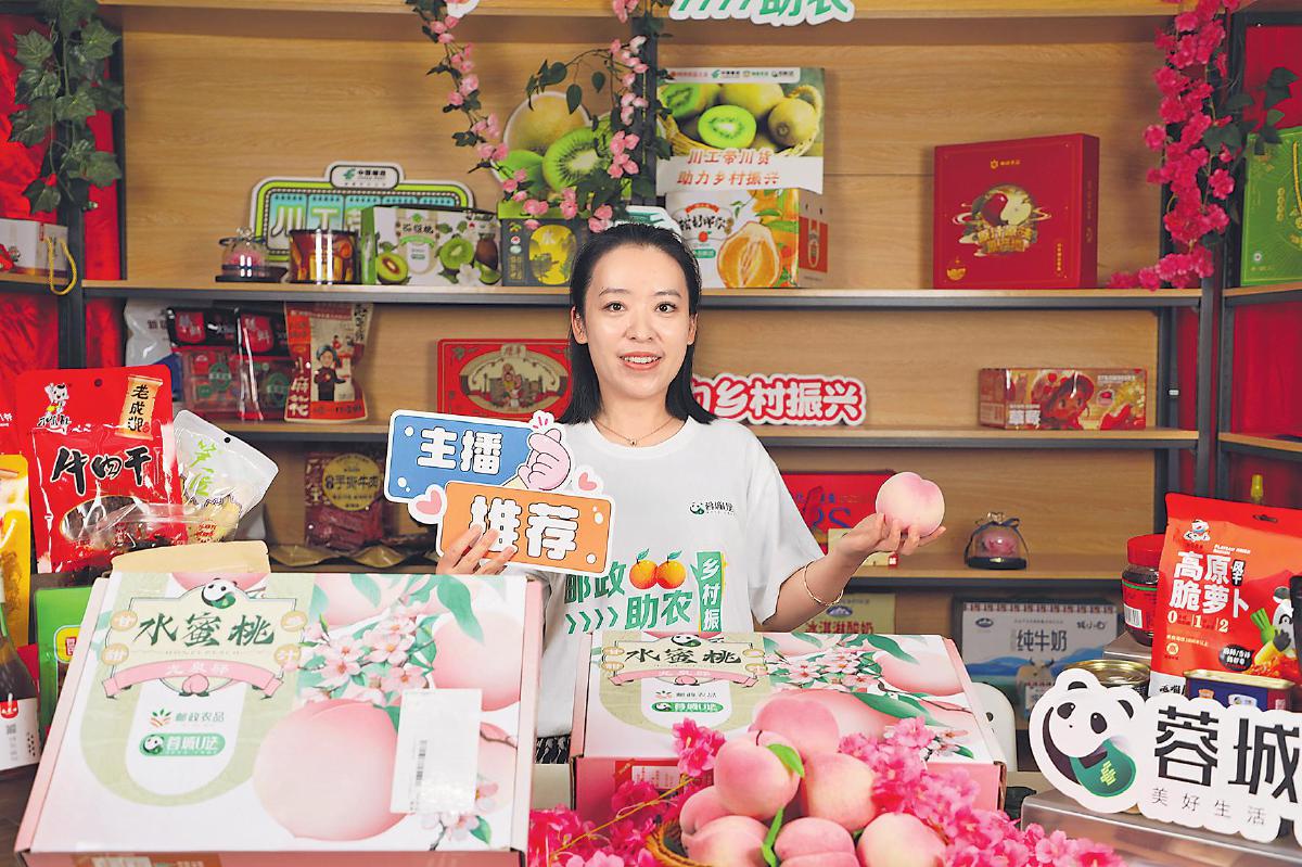 “龍泉水蜜桃汁水豐沛、口感香甜,每一口都像在品嘗夏天!”6月20日,在龍泉驛區(qū)農(nóng)業(yè)農(nóng)村局與山泉鎮(zhèn)政府聯(lián)合主辦的特色農(nóng)產(chǎn)品展銷活動中,郵政員工布展搭景,通過直播推銷龍泉水蜜桃,引來果農(nóng)的圍觀,同時也收獲了大量網(wǎng)友的點贊與訂單。自水蜜桃大量上市以來,成都郵政加大助銷力度,頻繁參與展銷推介會,為龍泉水蜜桃傾情代言、直播帶貨。