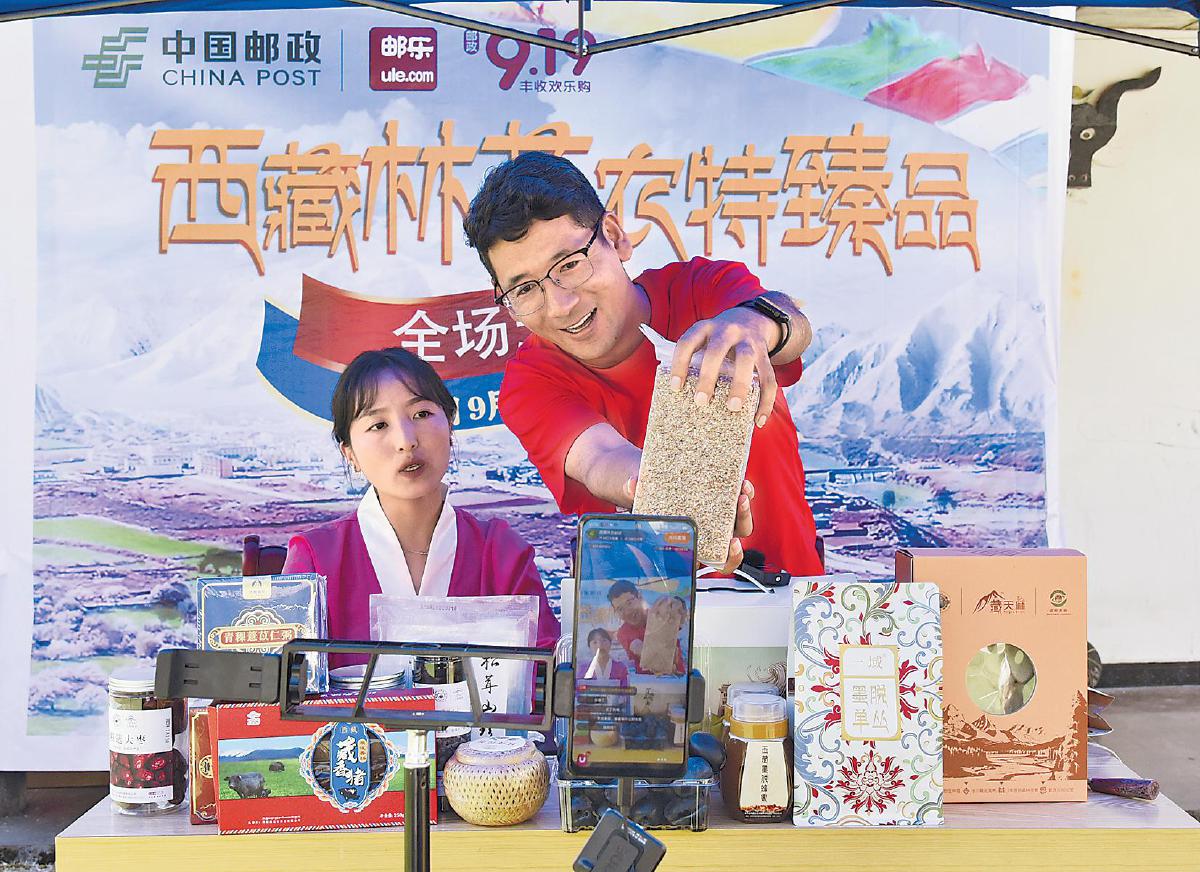 林芝市郵政分公司開展墨脫紅米等農(nóng)特產(chǎn)品溯源直播,讓藏品“郵全國(guó)”。