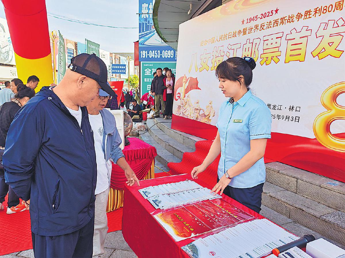 “八女投江”英雄事跡發生地——黑龍江省林口縣隆重舉行抗戰勝利80周年紀念郵票發行儀式,向舍生取義的巾幗英雄致敬。□曹宇航 攝影報道