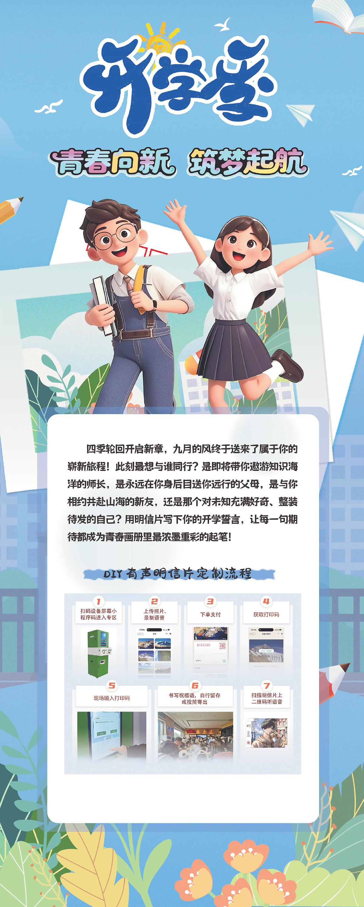 9月6日是鷹潭職業(yè)技術(shù)學院開學的日子。鷹潭市月湖區(qū)郵政分公司郵政業(yè)務(wù)部主任熊銀萍帶領(lǐng)同事,一早就守在校園郵政快遞驛站門口。“1元體驗DIY有聲明信片”的廣告展架剛擺出來,就吸引了學子們駐足——他們與家人溫馨合影,和朋友歡樂抓拍,捕捉校園里的第一抹秋色,開啟大學生活的第一張自拍……這些精彩瞬間都被有聲有色地記錄在小小的明信片上。當天,500余枚DIY明信片從這里發(fā)出。熊銀萍看著學子們的笑臉欣慰地說:“這些承載夢想與祝福的卡片,將陪伴他們一起走向更加美好的未來!”