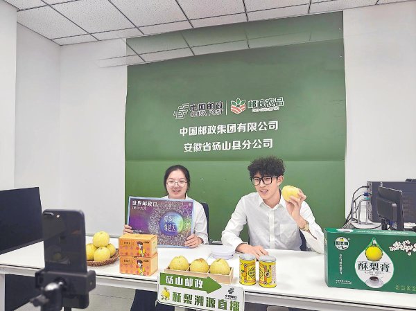 10月9日,安徽省碭山縣郵政分公司緊扣碭山酥梨特色農業產業,開展“鄉村振興 郵我助力”世界郵政日主題直播活動。在直播間,主播重點展示了郵政為酥梨產業量身打造的源頭品控、專業包裝、冷鏈運輸等一體化服務方案,彰顯郵政有效助力地方經濟發展、服務鄉村振興的新作為。 □房洪玲 攝影報道
