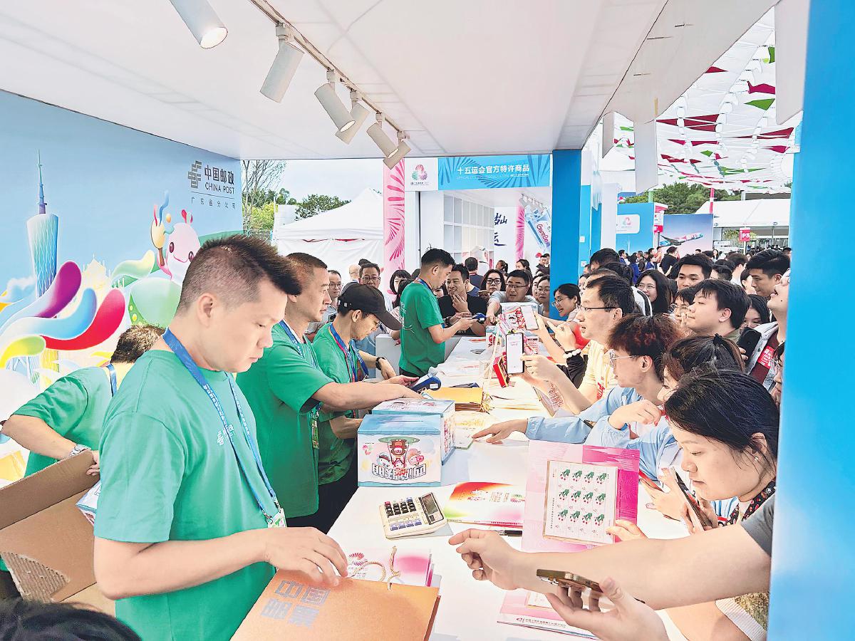 目前,全運(yùn)郵局也在廣東各個(gè)比賽城市全面亮相。廣州市分公司布局地鐵“全運(yùn)快閃郵局”4個(gè)、永慶坊“乒乓快閃郵局”1個(gè)、中華廣場“全運(yùn)快閃郵局”1個(gè)、小石集“快閃郵局”1個(gè),覆蓋了廣州市內(nèi)重點(diǎn)商圈、地鐵樞紐等重要客流區(qū)域。深圳市郵政分公司在十五運(yùn)會(huì)群眾比賽羽毛球項(xiàng)目的比賽現(xiàn)場設(shè)立了全運(yùn)郵局。在郵局內(nèi),“有聲明信片”成為人氣焦點(diǎn)。人們現(xiàn)場打印賽事照片明信片,并錄入語音祝福加蓋專屬紀(jì)念戳。一位來自外地的觀賽者感慨道:“為觀看這場賽事特意跨越千里趕來,這份全運(yùn)記憶既溫暖又有意義。”中山市郵政分公司陸續(xù)在全市7個(gè)官方特許商品零售店設(shè)立全運(yùn)郵局,推出十五運(yùn)會(huì)吉祥物和特色產(chǎn)品、紀(jì)念戳卡及蓋章服務(wù)。十五運(yùn)會(huì)群眾賽事期間,中山郵政還進(jìn)駐比賽場館和酒店,為運(yùn)動(dòng)員與群眾提供便捷服務(wù)。惠州市郵政分公司在比賽場館設(shè)立全運(yùn)郵局及“運(yùn)動(dòng)健將郵筒”,開展“為健兒寄祝福”明信片郵寄活動(dòng)、“激情全運(yùn) 戳記精彩”集戳活動(dòng),將祝福傳遞給更多運(yùn)動(dòng)員。東莞市郵政分公司在多個(gè)商圈開設(shè)全運(yùn)郵局,并在全市設(shè)置了6個(gè)可購買十五運(yùn)會(huì)吉祥物的網(wǎng)點(diǎn),與市民共度全運(yùn)會(huì)嘉年華。東莞郵政同步開展“戳記精彩”集戳活動(dòng),提供賽事主題紀(jì)念戳、運(yùn)動(dòng)項(xiàng)目紀(jì)念戳等。