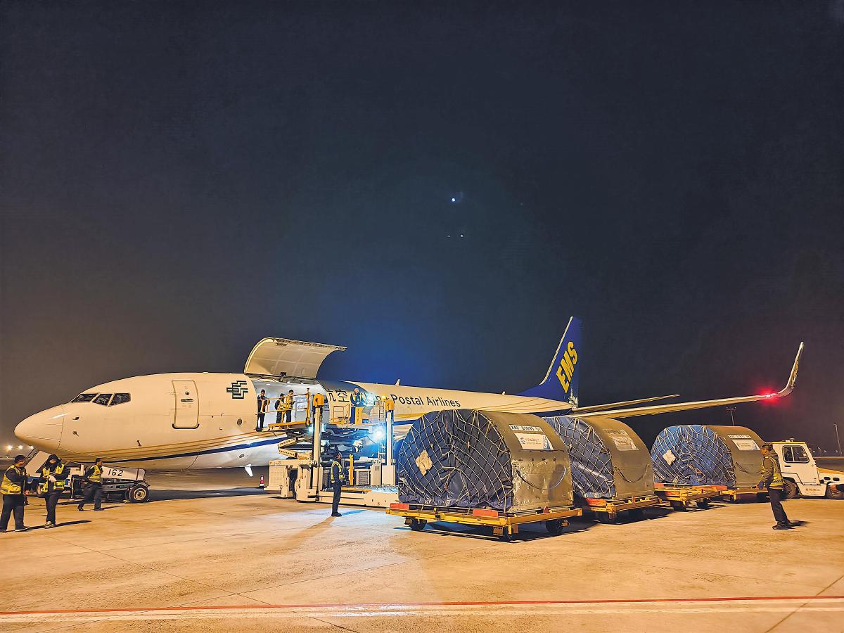 包裹從內(nèi)蒙古搭乘郵政航空貨運(yùn)專機(jī)經(jīng)轉(zhuǎn)南京集散中心奔赴上海。