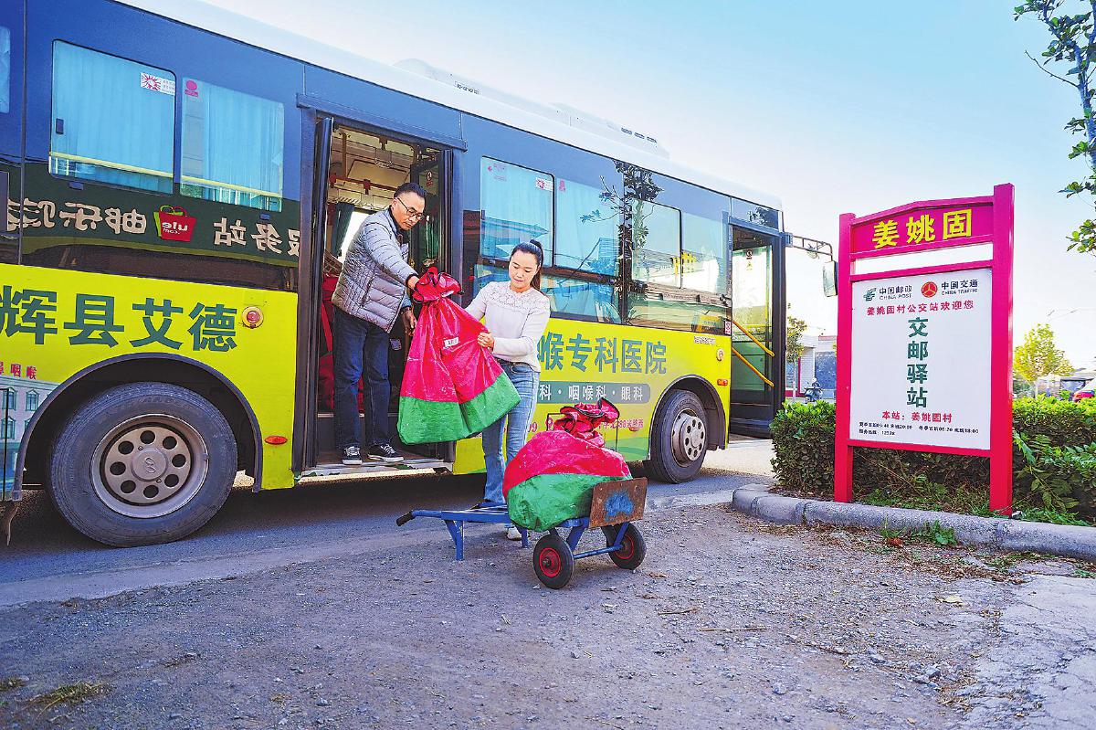 說話間,一輛懸掛著“交郵合作”標志的公交車緩緩停靠在店門口。司機張師傅與關亞杰一起熟練地裝卸郵件上下車。“以前跑這趟線,空駛率高,公司運營壓力大。現在既能拉乘客,又能運快遞,我們的收入也多了點,一舉兩得!”張師傅笑著說。