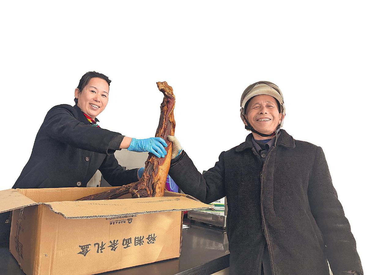 村民在大栗港支局寄出臘肉。□張明月 攝