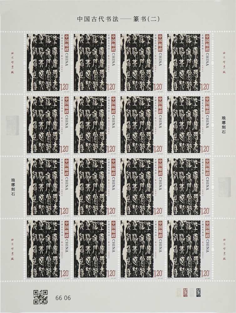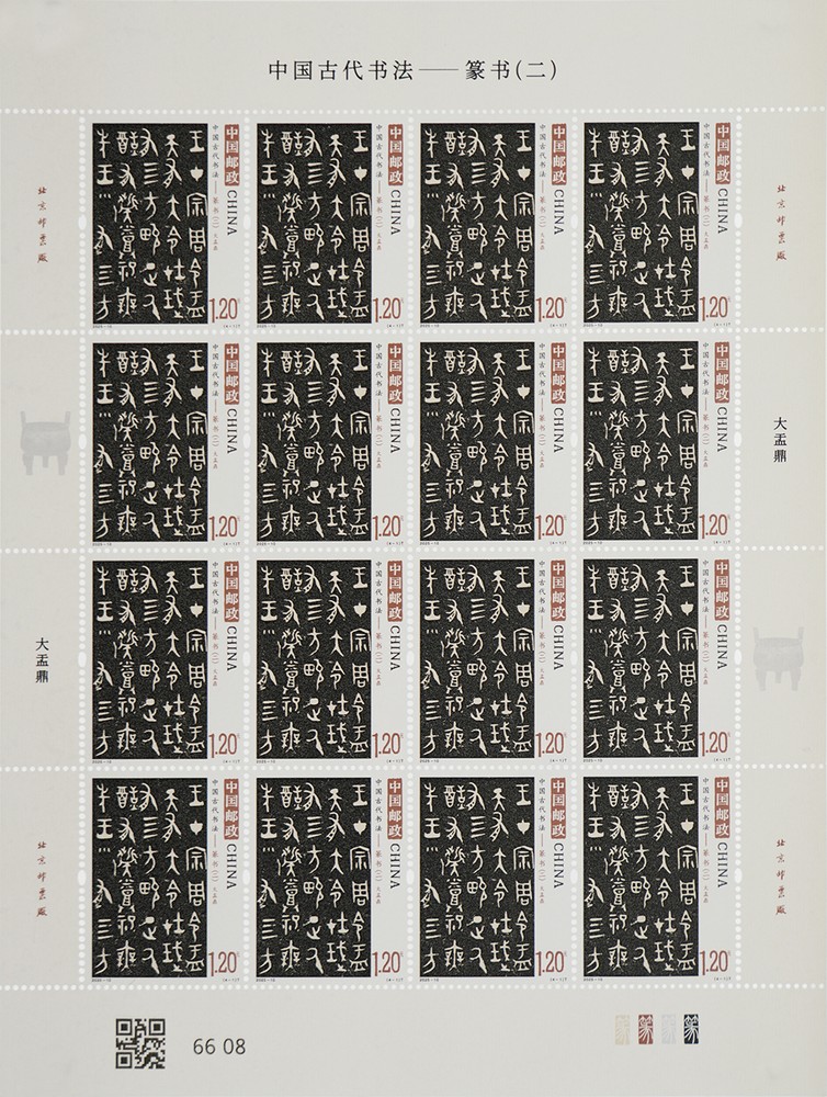 中國郵政定于2025年6月21日發(fā)行《中國古代書法——篆書(二)》特種郵票1套4枚,小型張1枚。詳情如下: