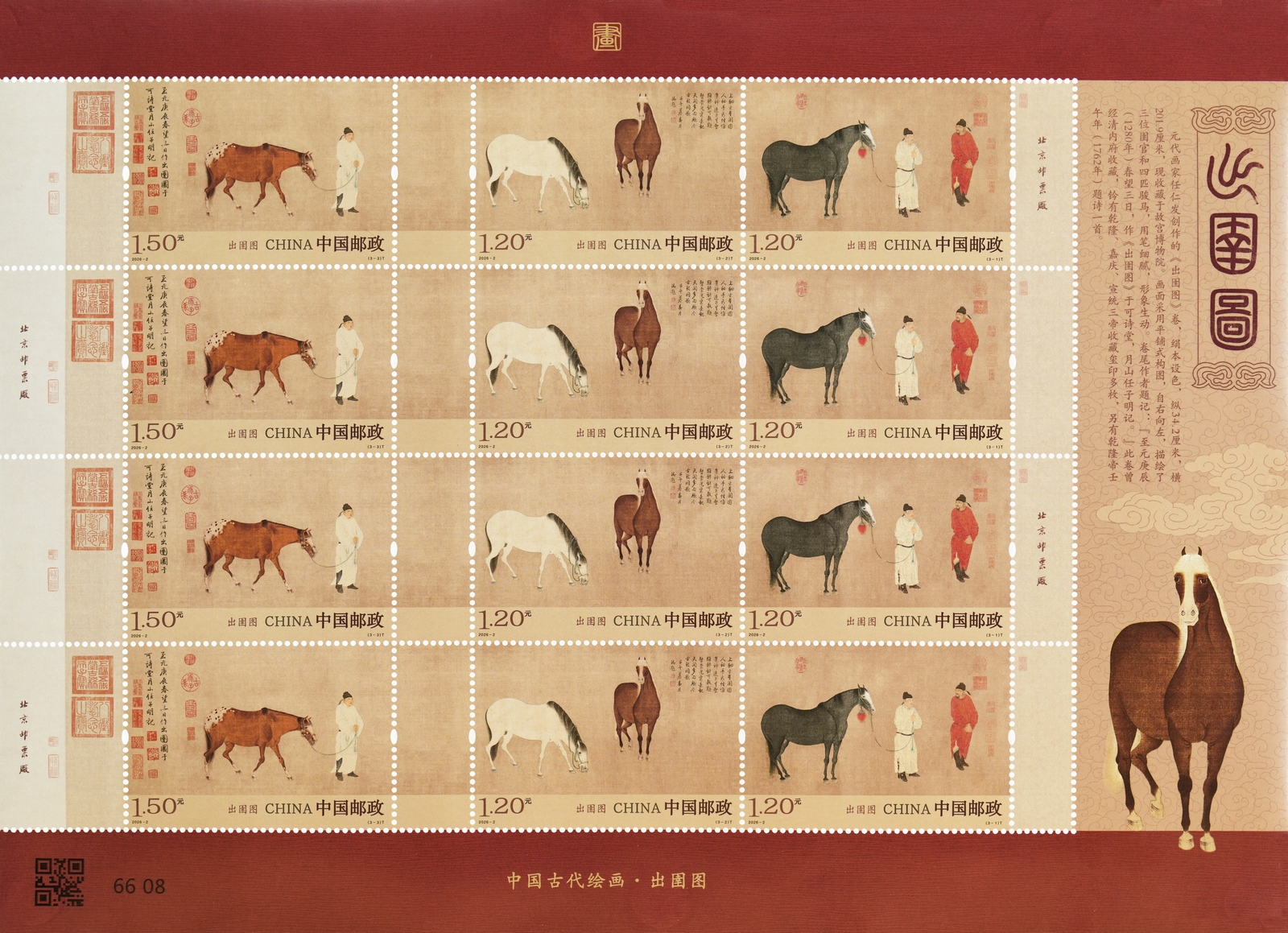 中國郵政定于2026年3月3日發行《出圉圖》特種郵票1套3枚。詳情如下: